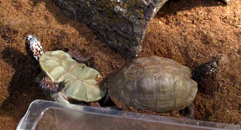[Update: The truth is far worse. They are both male. I found Felter dorking Rorg later. I will never be able to see turtles the same way. I knew that turtles were apt to "mount" anything remotely resembling another turtle, but this is beyond what i had envisioned. They actually tightly lock in to another male's cloaca for extended periods, and the recipient can't escape.