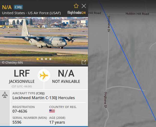 Feb 6, '25: (11:40am ) They were leaving me alone until this morning, when 2 N/A jets in the same path flew right over my property. Jacksonville is where the "Little Rock" AFB is.
