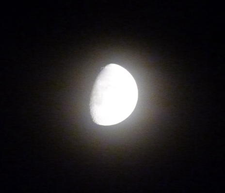 The reader wrote: "moon is oval in picture . I see it different (than camera) - much less full and not ovalised (and chem trail right above)".