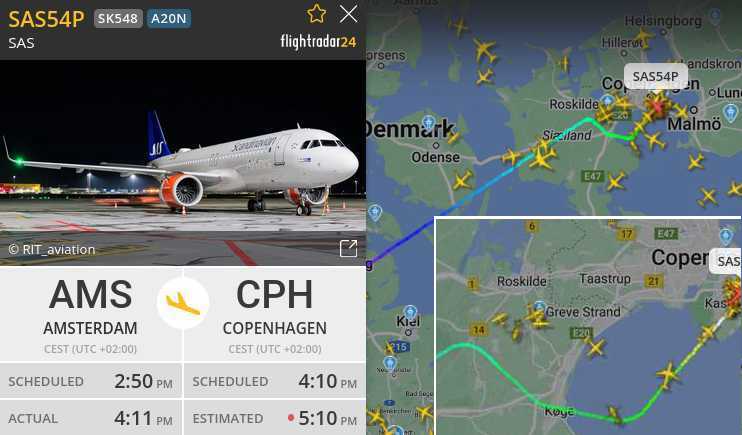 On its tail passenger flight SAS568 came right over Koge. It is Scandinavian Airlines Connect.