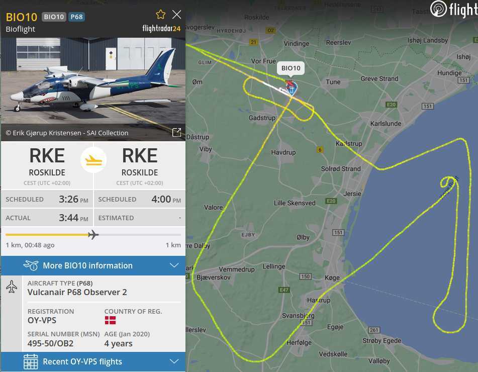 This one danced around the Roskilde airport a bit and also crossed over Koge.