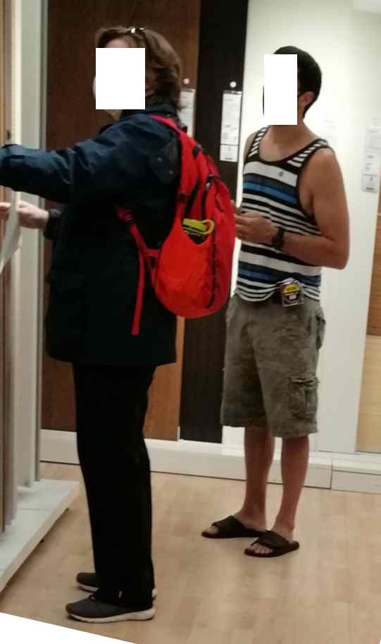 Yesterday a reader at work sent me this pic of 2 "people" who had a weird vibe and seemed to be there for him, while pretending to be normal shoppers. They had a real odd vibe at first that took me a little while to fathom. The man's entire skeleton as well as the woman's from the hips down, seem to have some artificial ingredient that really affects their energy radiance. I don't know what it is, but the vibe reduced as i blasted them. I tried to figure out which of my channeled programs were doing this, but was unsuccessful.