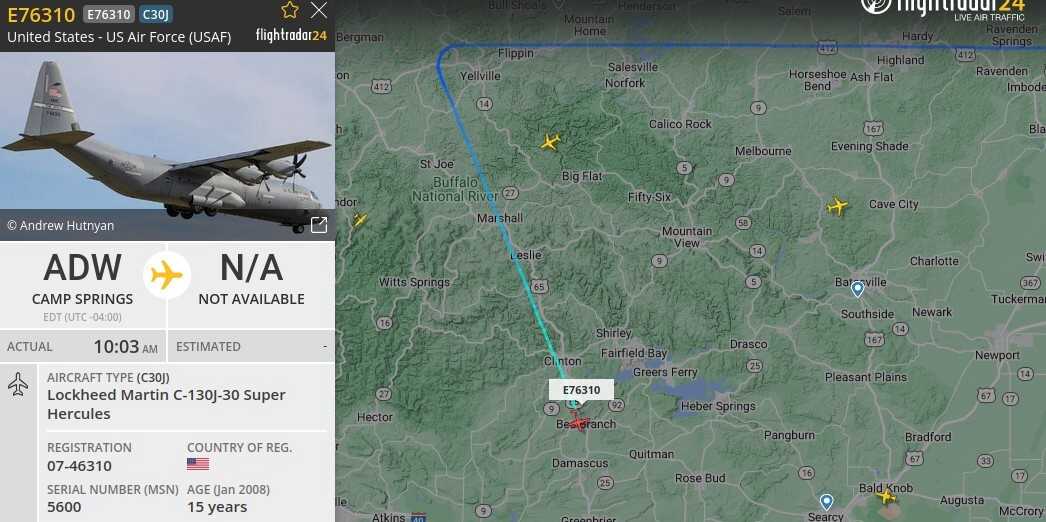 This plane just came over a while ago. It took off from Andrews AFB in VA and took a weird route, coming by my place, and down the well-busted Hwy 65 corridor, and landed at the USAF base from hell in Jacksonville. Yes, i had neglected to keep that place clean of energy inputs (as explained June 26).