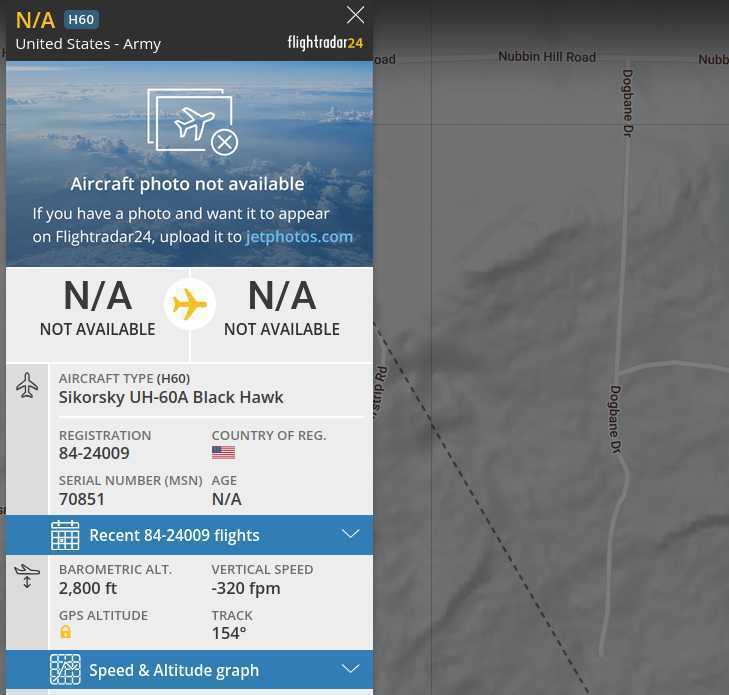 Last night around 8, an Army Blackhawk with the call number of BLADE30 flew over loudly very low and slow. Sounded like it went right over my cabin, but radar says it passed a bit west of there.
